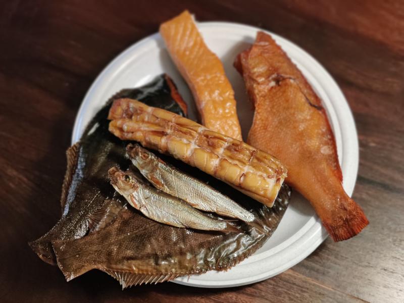 ... Das Matjesbrötchen direkt auf die Hand, den Räucherfisch …