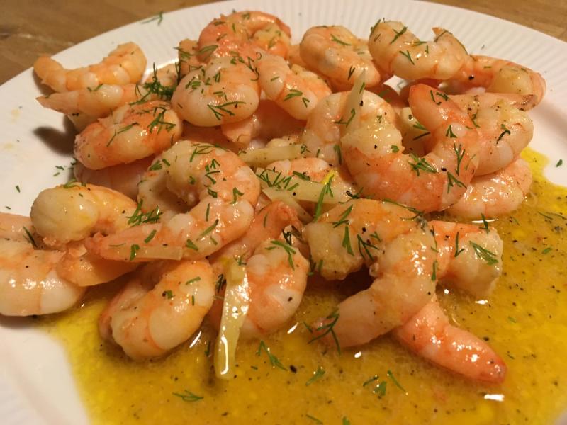 Mit Knoblauch, Limette, Chili, Dille. Dazu Brot.