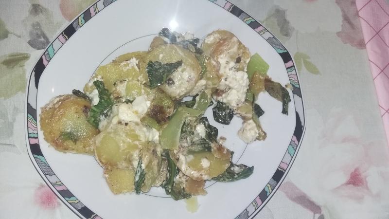Und heute eine Kartoffeln-Pak-Choi-Pfanne mit Schafskäse und Sardellen.