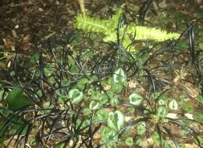 Ich wässere ja meine Schattenbeete im Sommer und im Winter schattiere ich sie, soweit Sonne hinkommt. Ophiopogon wachsen dort relativ gut. Nicht üppig, aber immerhin, sie bleiben.
