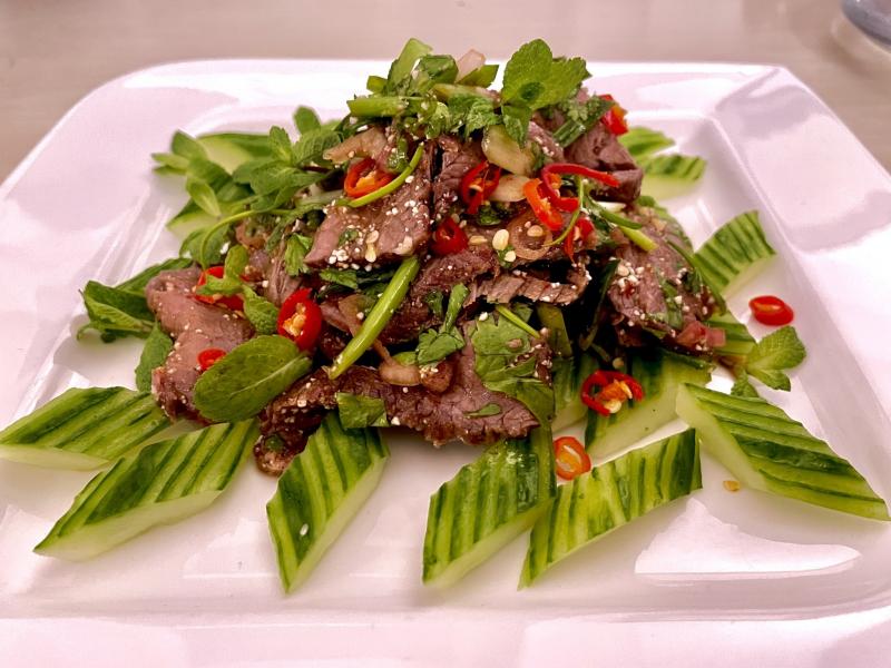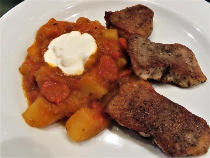 Hier gab es gebratenen Wels mit Erdäpfgulasch.