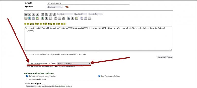 Kakifreund hat geschrieben: ↑13. Jan 2022, 14:42... Hmmm... Wie zeige ich ein Bild aus der Galerie direkt im Beitrag? ...