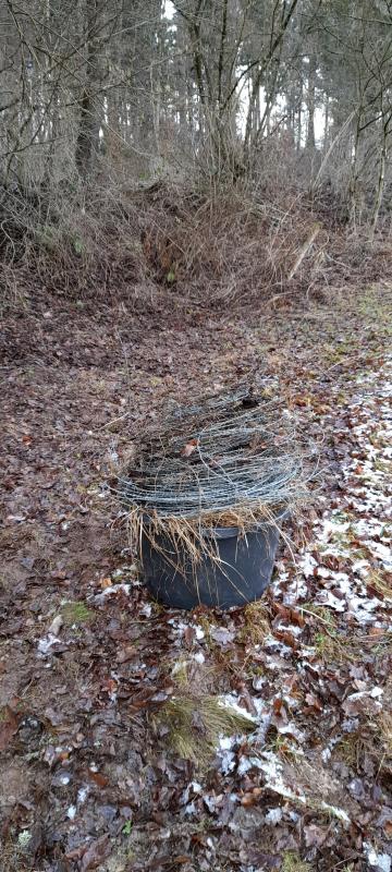 So sieht es allerorten hier aus. :P Und wer meint: Na, knipste ab und gut. So optimistisch sollte man nicht sein. Die Harke offenbart dann, dass das bereits die dritte Generation Stacheldraht und Pfosten war. Und keiner hat es für nötig befunden den alten Draht jeweils zu entfernen. Für Tipps über taugliche Metalldetektoren wäre ich nicht undankbar :-\ Kommende Woche geht es auf der anderen Seite weiter. Unerbittlich beseitigen wir diese Altasten. Jeden Winter so weit uns die Arme mitspielen.