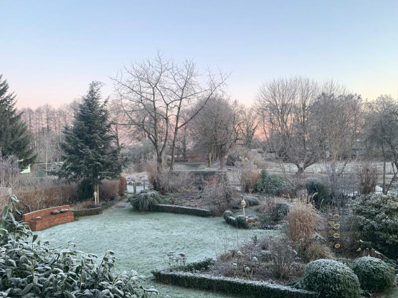 Lediglich ein kleiner Blick Ost. Der Raureif machte gestern den Garten winterschöner.