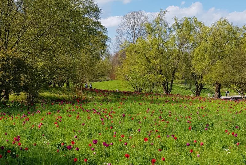 Ehe ich mich an Taglilien ergötze, freue ich mich erstmal wieder auf die Tulpenwiesen im Britzer Garten in Berlin. - auch rot