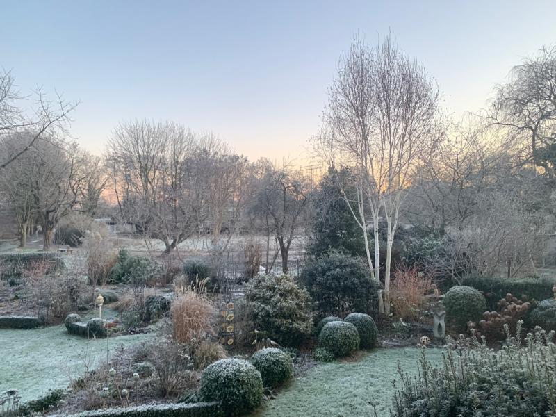 Lediglich ein kleiner Blick Ost. Der Raureif machte gestern den Garten winterschöner.