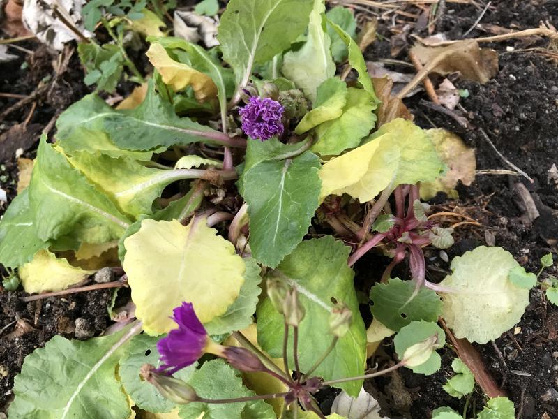 Im Herbst hatte ich befürchtet das sie eingeht denn ich hatte gelesen das sie wintergrün sei. Da ich auch Axel ein paar Pflanzen gegeben hatte war mir seine Einschätzung wichtig denn seine zeigten noch keine braunen Stellen. Er hatte aber eine Info gefunden die dieses Primelchen als nicht wintergrün beschrieb. Und jetzt treibt sie zu meiner Freude wieder aus. Bestimmt etwas früh aber damit muss sie klar kommen.