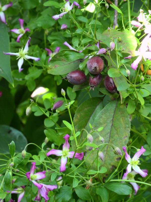 Eine ähnliche Clematis ...oder ist es die gleiche Sorte?... , klettert...in was?