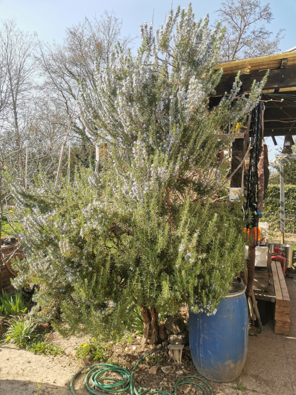 Mein Rosmarin arbeitet erst seit letztem Jahr am prächtig werden. Momentan steht er mit viel Laub um die Füße auf meinem Steinhaufen (Kräuterspirale) ganz oben und fühlt sich anscheinend wohl.