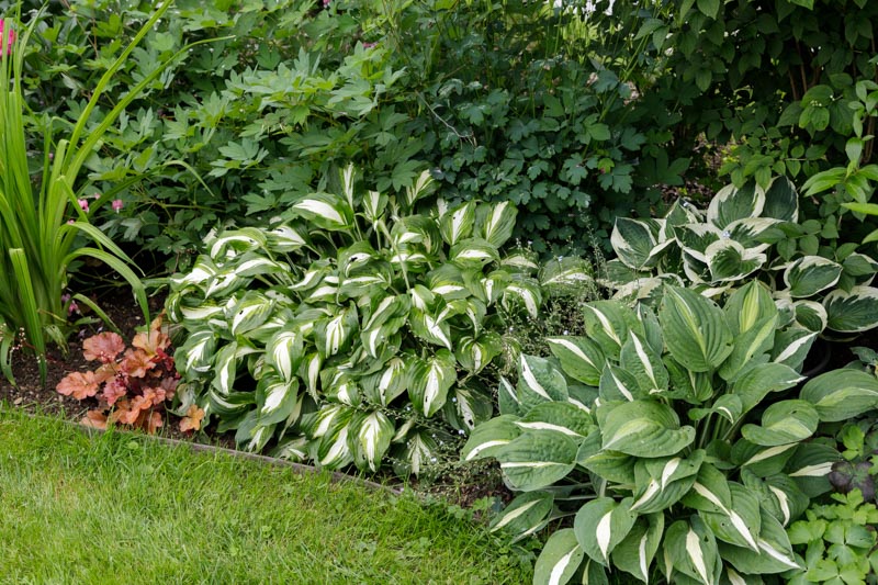 Nochmals Hosta. Zwar ohne Blüte, aber mit vielen Möglichkeiten zum Anlegen.