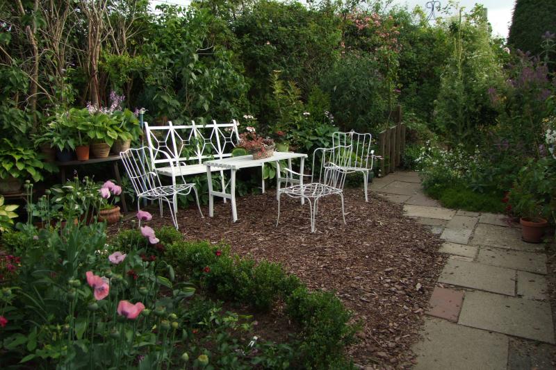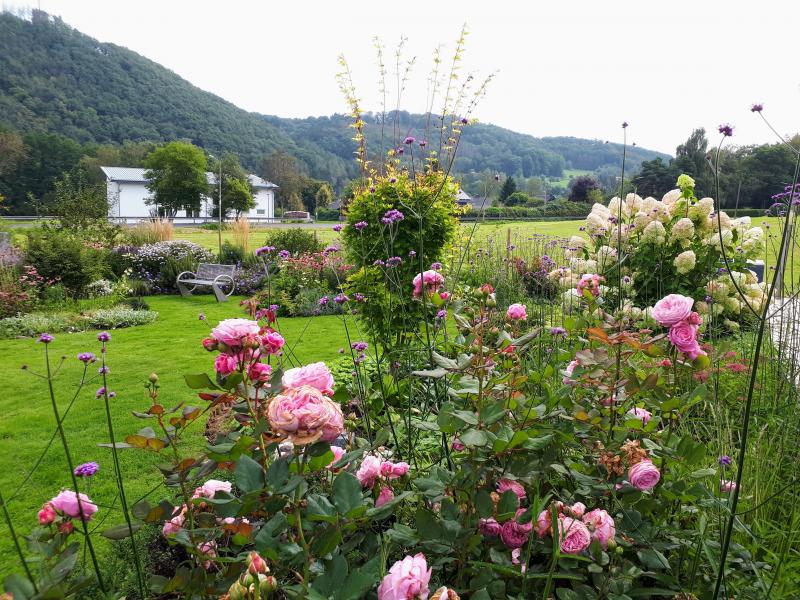 Ich sehe hinten rechts umzäunte Rosen. ;) Älteres Foto,den Baldachin vom Pavillon hats schon lange weggefetzt.