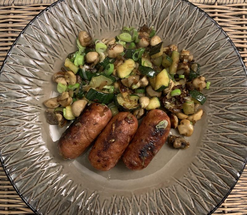 Dem allgemeinen Trend folgend, habe ich auch Salsiccia gekauft. Dazu gab es heute Champignon-Zucchini Gemüse.