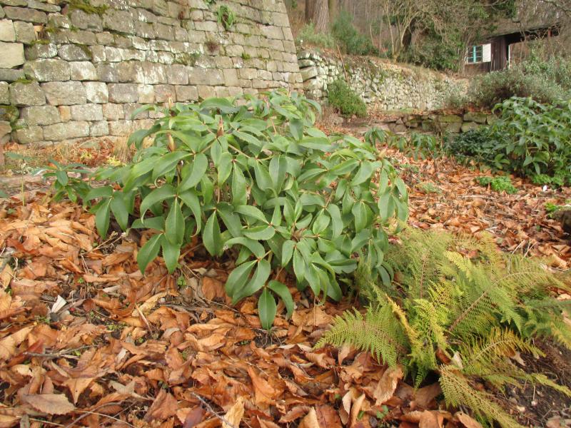 Im Waldrandbeet machen die Helleboren argutifolius ganz dicke Knospen.