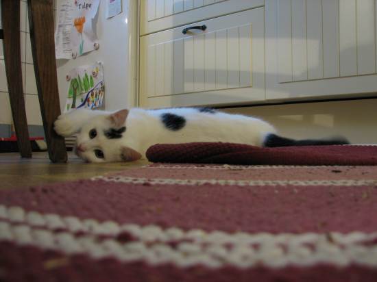 soooo, bei mir gibts auch 4 neuzugänge - 2 vom ehemaligen nachbarbauern, und 2 von meiner arbeitskollegin. alle noch halbwüchsig.....zuerst hab ich mal die beiden fraktionen zum aneinander-gewöhnen 2 tage in einen raum gesperrt mit allen annehmlichkeiten. das klappte eigentlich ganz gut, auch wenn anfangs alle angst hatten und eine katz sich sogar dauernd angesch*** hat. aber nun sind die 4 katzen zumindest so weit, dass es kaum noch knurren gibt und man sich toleriert.das erste bild zeigt Louis - ein kater der im juni geboren wurde und jetzt schon so ein monster ist, dass er in größe und gewicht kaum meinem alten leo nachsteht. er hat am meisten power und düst tag und nacht durchs haus. noch dürfen sie ja nicht hinaus.