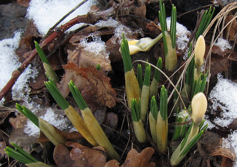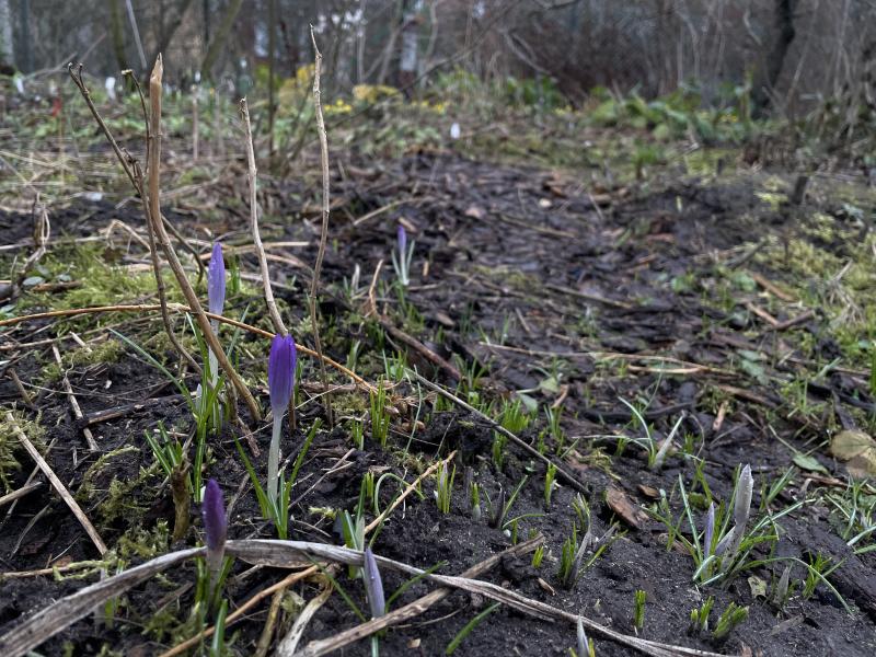 Eine Osterglocke spitzt einen halben Zentimeter aus dem Boden, der Krokus nicht. :-\