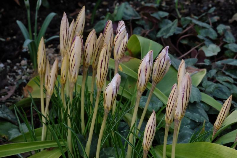 Die warten hier auch nur auf den ersten Sonnentag. Von den Elfenkrokussen hingegen sind gerade mal kleine Spitzen zu sehen.