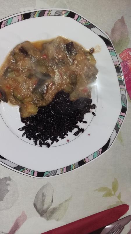 Ach ja, am Montag gab's Riso venere mit Ratatouille -