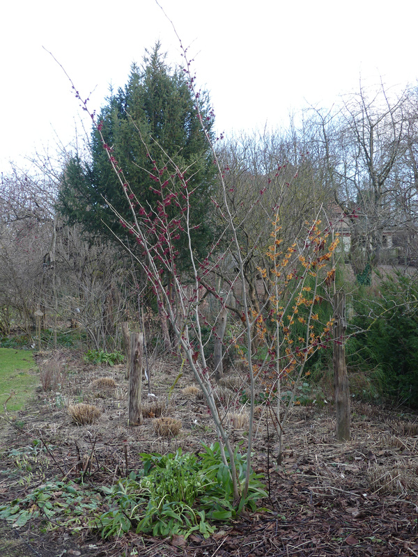 raiSch hat ja schon ein Bild gezeigt. Mein Exemplar 17. März 2016. Schlanker geht es bei Hamamelis nicht. Blüht spät und duftet nicht. Gekauft hätte ich mir die nicht. Sie wurde mir ja als Pallida untergejubelt.