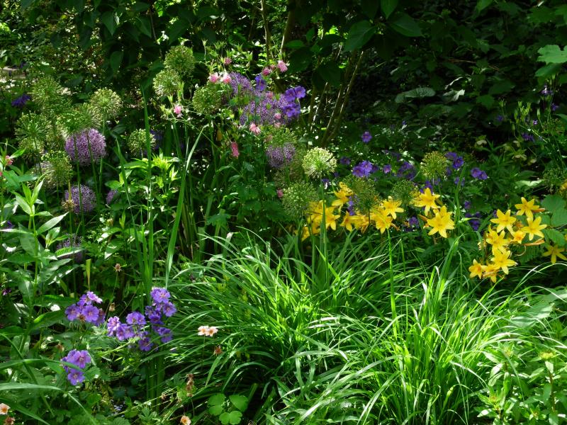 Danke, Andreas - mit den Hemis hab ich keine Probleme. Halbschattig ist nicht ganz richtig, es ist nur der Fuß der Pflanzen meist im Schatten, oben bekommen sie genug Sonne. Clematis sind schon drin....