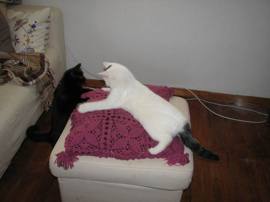 Toll die Bilder von deinen Beiden Kätzchen ;DDas dritte gefällt mir am besten :DBei regnet es leider schon seit Tagen und mein Hündchen kann kaum raus :-\Gruß Karin