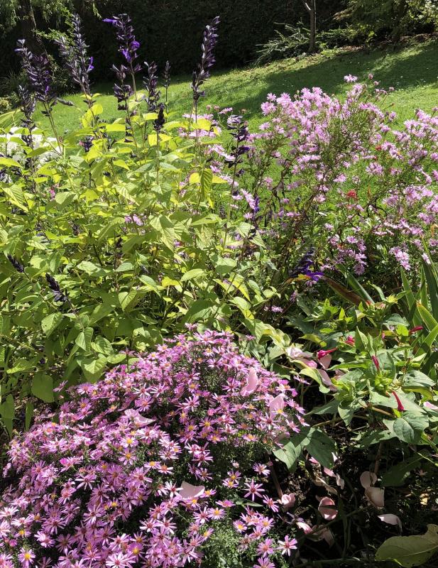 Die im Vordergrund ist ' Jasmina' und dahinter mit kleineren Blüten 'Exquisite'