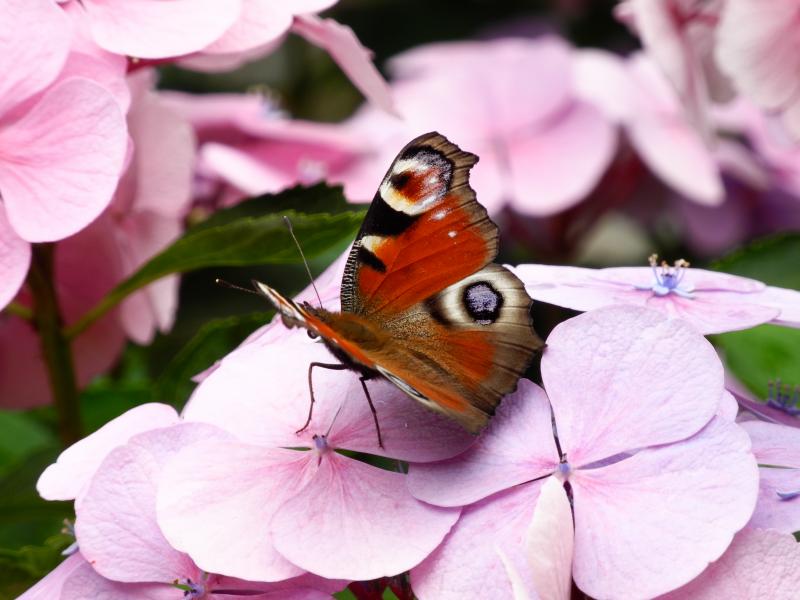 Hier links im Bild eine Hortensie, und im Hintergrund Johannisbeere. Muss man aber auch suchen ;)