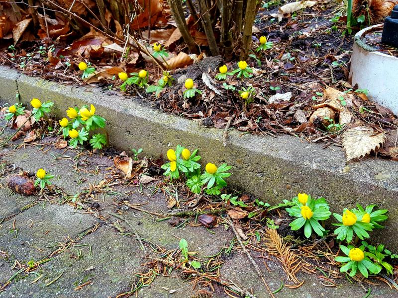 Da werde ich doch dieses Jahr mal von meinen paar Eranthis ein paar Samen in die Wandfugen am Haus und an der Mauer in der Hofeinfahrt drücken. Dauert dann zwar ein bissi, bis sie endlich bühen, aber die Fugen sind halt schmal, ganze Knollen passen da nicht rein.