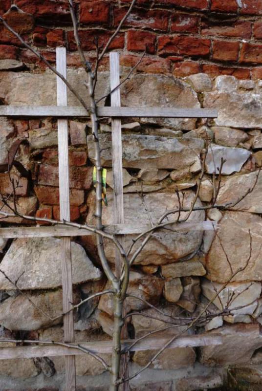 Und hat mich auch daran erinnert, bei meinem Birnenspalier (so wie bei meinem anderen Apfelspalier) im 1. Jahr die äußeren Triebe noch nach oben zeigen zu lassen.