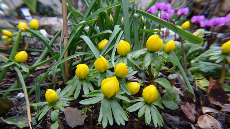 Das ist ein Grund, weshalb ich keine großen Flächen mit Winterlingen in meinem Garten habe - in vielen Jahren öffnen sie nicht richtig bevor sie verwelkt sind, dank des tollen Niederrhein-Wetters.