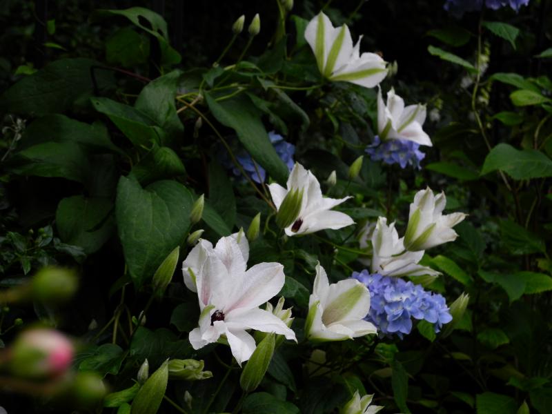 Da habe ich noch Clematis 'Nelly Moser' mit einer Hydrangea 'You and Me Together'
