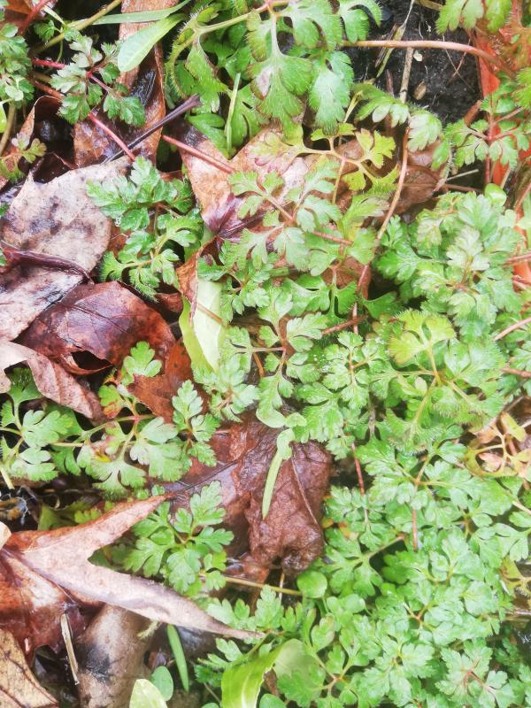 Wenn's Geranium robertianum ist, müsste es beim Berühren ja ordentlich stinken, und man müsste es sehr leicht jäten können. Hast Du da im Herbst vielleicht Knollen von Anemone coronaria versenkt?