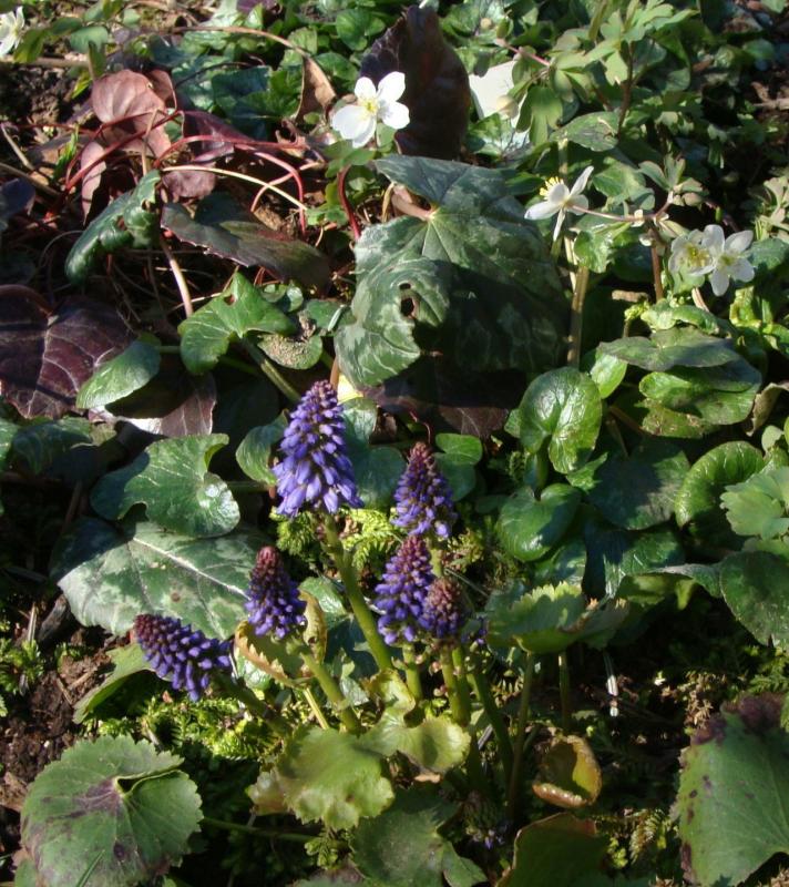 die erste zeigenswerte Pflanze des Jahres bei mir: Synthyris missurica mit 10 Blütenständen. Ich führe das auf die Feuchtigkeit im letzten Sommer zurück. Im Hintergrund Shortia und Isopyrum thalictroides. Die Shortias fangen übermorgen an zu blühen.