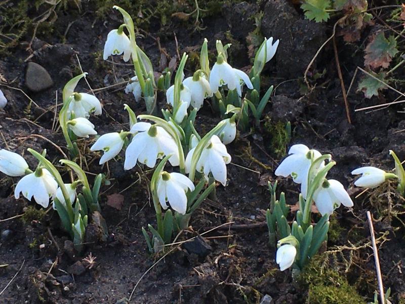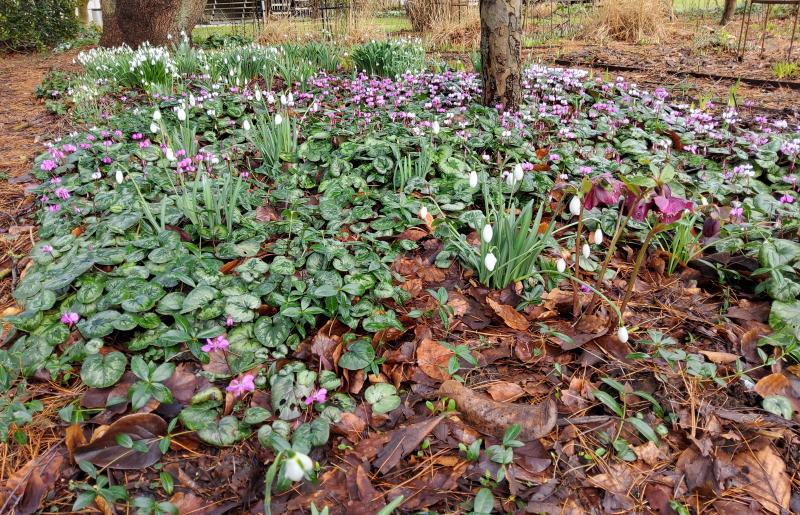 so langsam Vollblüte, ein paar späte nivalis fehlen noch, aber die meisten sind da. Einmal mit Cyclamen im Vordergrund
