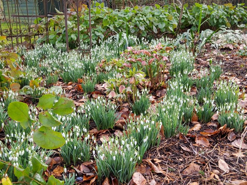 Die normalen nivalis, elwesii und die meisten der Greatorex-Doubles müssen sehen, wie sie zwischen Stauden zurechtkommen.