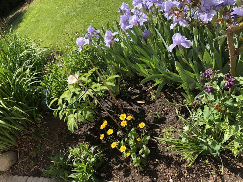 Meine Lieblings Pfingstrose 'Jan van Leeuwen'... mit ganz viel drumherum, übrigens auch Wieseniris wie bei Helga! :D