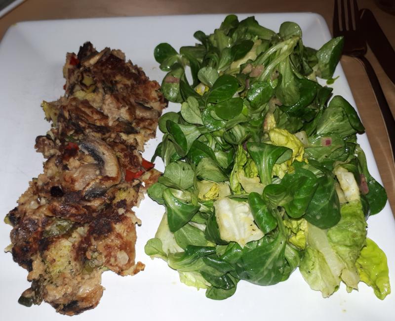 Im Sommer habe ich eine Art Gemüsekuchen gemacht, der sich "schnelle Pizza" nennt. Eine Masse aus viel Gemüse, Thunfisch, Eiern, Käse und Mehl wird auf ein Blech gestrichen und im Ofen gebacken. War aber nicht so doll. Innen drin sehr pappig.