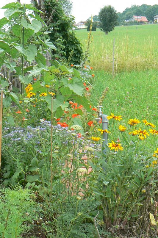 Und wenn sie verblüht ist, übernehmen an der anderen Seite Buddeleia, Indiandernessel, Rudbeckia und wer sonst gerade so Zeit hat