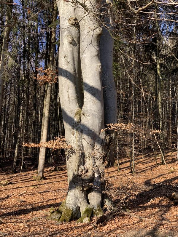 Oben auf der Anhöhe, dem Kraterrand hat man vor Jahrzehnten Linden angepflanzt, die zum Teil bizarre Wuchsformen haben.