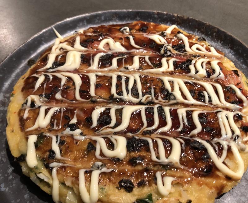 Ich reiche noch ein Foto vom gestrigen Okonomiyaki nach - diesmal die Mayo etwas dekorativer. Aber als die Bonitoflocken später drauf kamen, hat man auch nichts mehr davon gesehen. ;)