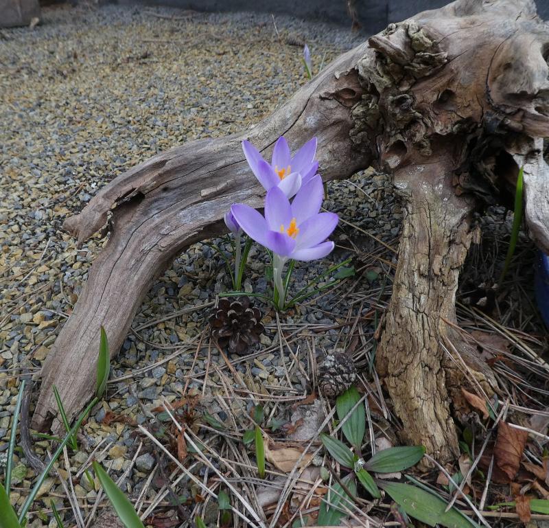 Irms Kaiser-Krokusse haben mich wehmütig werden lassen, weil sie so schöne Gruppen bilden. In diesem Jahr zeigen sich die eigenen Pflanzen erstmals wüchsig. 'De Jager' scheint also doch nicht so zimperlich zu sein wie erst gedacht.