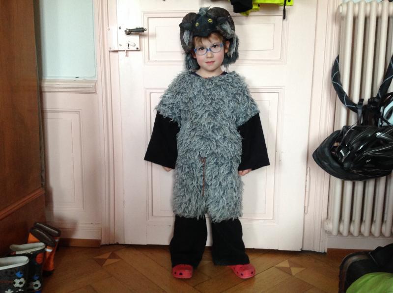 Da war der große Bruder kurz for der Fastnacht krank, und ich hab in der Zeit ganz fix das Kostüm zusammengehauen, wir hatten uns, glauc^b ich, am erhältlichen Stoff orientiert, Tiger gabs nicht ;)