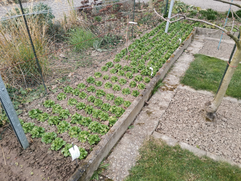 In dem kleinen Stickstoff Spätgabe Versuch habe ich gesehen was ich sehen wollte und wie sich gepflanzter Feldsalat zu gesätem verhält auch. Was noch gefehlt hat und sich wegen der verunkrauteten Fläche angeboten hatte, war durchtreiben lassen und Samen ernten.