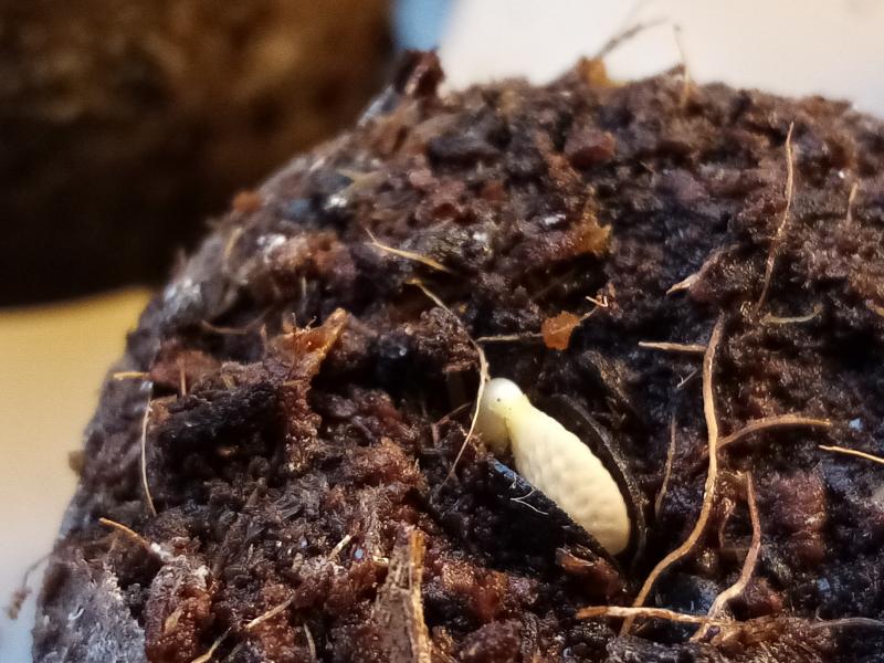 So ist es bi mir auch, die 2020 gesammelten Samen machten im letzten Herbst Wurzeln, jetzt kommt das erste Blatt.