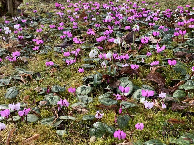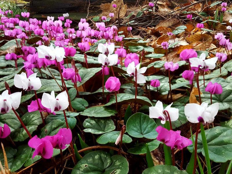 Wunderschöne Bilder zeigt ihr hier. Zum Teil sind riesige Flächen bewachsen. Hier wachsen die meisten unter Magnolien und deren großes Herbst-Laub verfilzt zu einem undurchdringlichen Teppich, unter dem alles erstickt. Ich muss wohl zukünftig im Herbst alles Laub konsequent entfernen. Mit dem Laubrechen reiße ich die Cyclamen-Blätter ab. Blasen klappt auch nicht gut. Ich werd's mal mit Absaugen probieren.