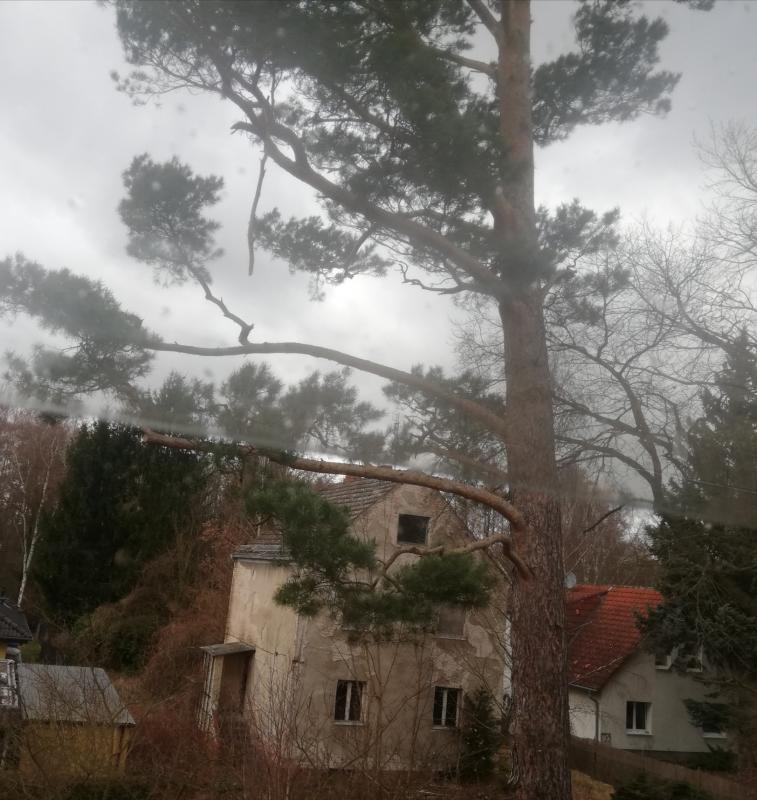 Solange die Kiefer nicht aufs Haus fällt und es nur etwas ächzt, ist alles ok.