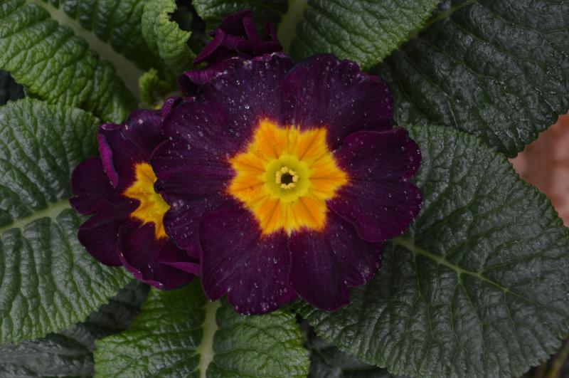 die blaue ehemalige Topfprimel, die ausbreitend wächst, sie wandert selber immer etwas weiter, am Bild sieht man auch mehrere Blattrosetten mit Blüten.