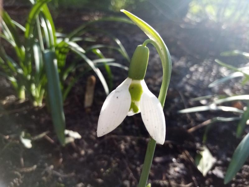 Bei dem heutigen Wetter blühen nun auch die Schneeglöckchen, Galanthus elwesii . Nivalis ist schon verblüht...