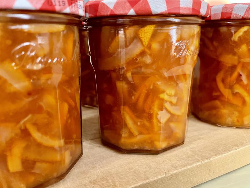 nachtarbeiten: ein paar bio-blutorangen waren mir nach dem saftauspressen zu schade zum wegtun und so schnitt ich die schalen klein und ließ sie ein paar stunden mit gelierzucker ziehen…