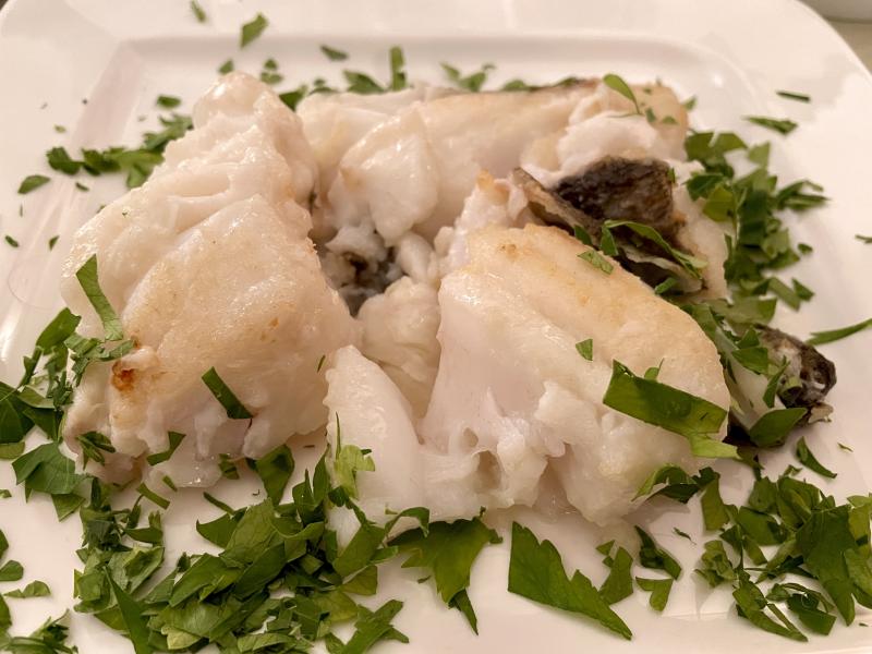 aber köstlich war es immerhin: skrei satt mit zitronensaft, petersil als sättigungslage. 8)