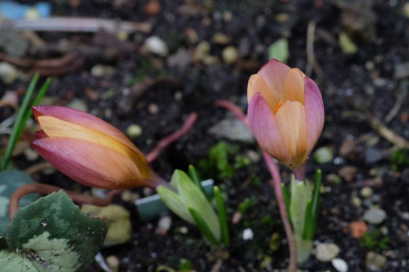 Hier blühen erstaunlicherweise schon die Krokus minimus 'Spring Beauty', heute früh noch geschlossen.